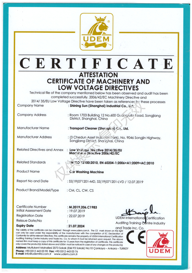 榮譽(yù)證書(shū) 車(chē)客林洗車(chē)機(jī)相關(guān)證書(shū)